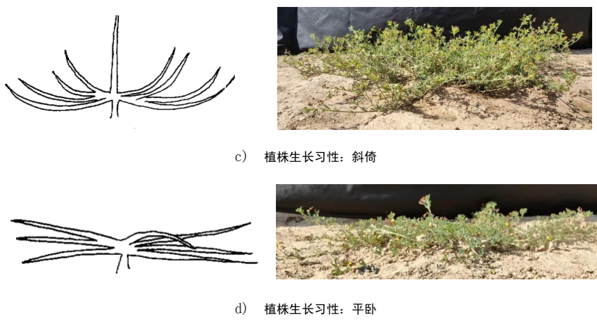 - 植株性状:生长习性、自然/绝对高度、冠幅、分枝性、再生性等