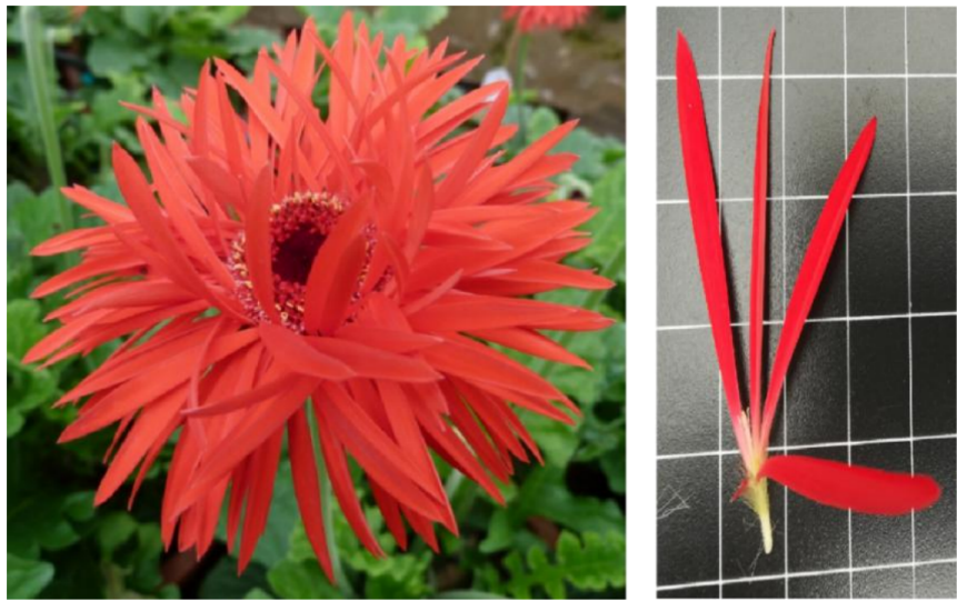 重瓣品种:短舌状花长度≥花序直径1/2