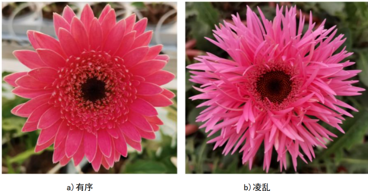 - 舌状花先端排列有序性:有序或凌乱