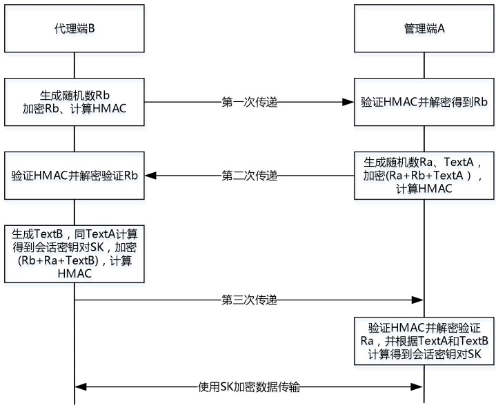 采用GB/T 15843.2-2024标准中的三次传递鉴别机制,基于预置对称密钥进行双向认证。