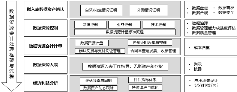 - 数据资源计量:包括初始计量、后续计量、处置和报废等