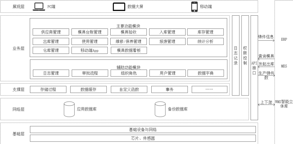 - 与MES集成:查询模具状态位置、自动出库申请、同步生产数据