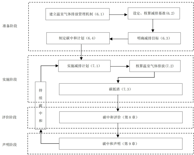 - 实施阶段:执行减排→温室气体核算→碳抵消
