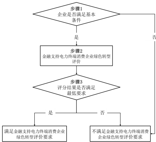 评价程序包括基本条件识别、金融支持电力终端消费企业绿色转型评价、评分结果计算及评价等主要步骤。