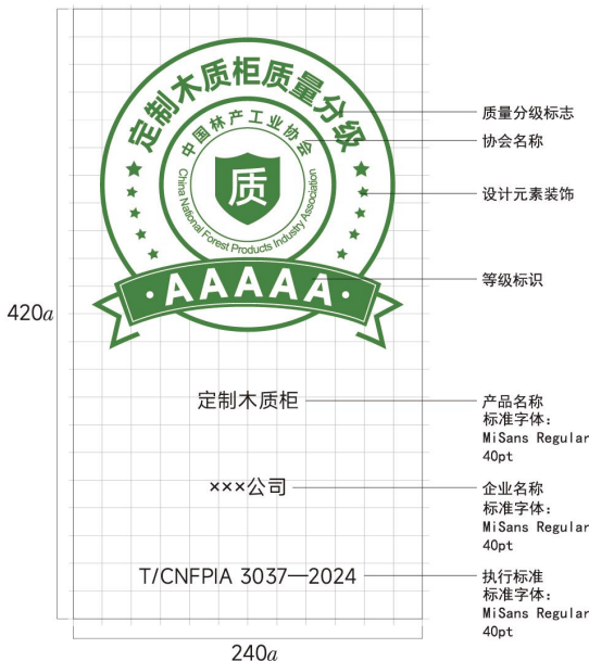 - 符合标准要求的定制木质柜,经中国林产工业协会许可,可在交付文件、包装和产品上加贴质量分级标识