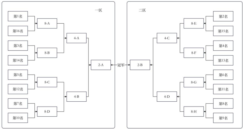 - 采用淘汰制,按排位赛名次确定对阵关系