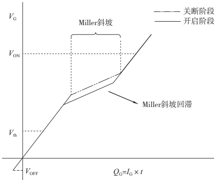 结果转换为栅极电荷曲线(见图3),显示米勒斜坡和回滞。