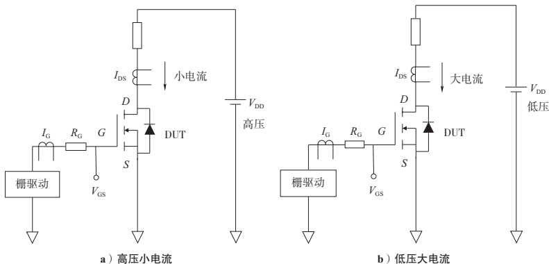 I_{/text{DS}}达到设定值,第二脉冲用于开启测试。 - 记录第一脉冲下降阶段(关断)和第二脉冲上升阶段(开启)的栅极电压和电流波形。